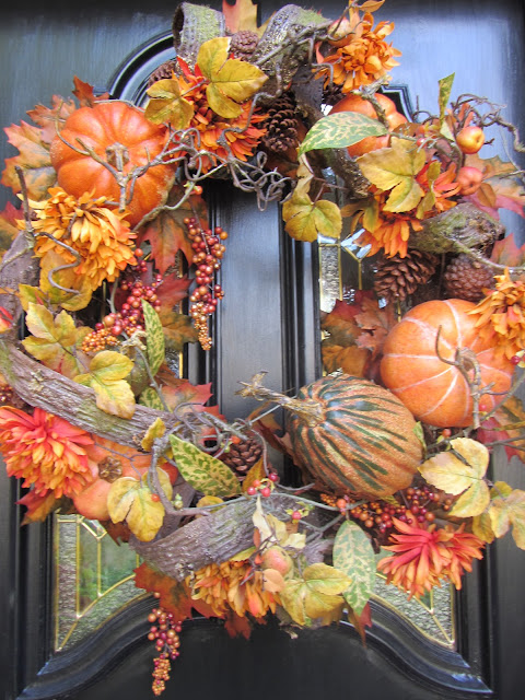 Finally, after an intensive search, I located my bins of Fall decor. I took a break from blogging last fall and spent most of my time at our Louisiana house. So, there was not much Fall decorating going on here. I had no idea where I had stored the bins; and when I located them, I no longer cared for the decor for my interior. So, I spread everything out on the floor and created new wreaths and decor for outside.