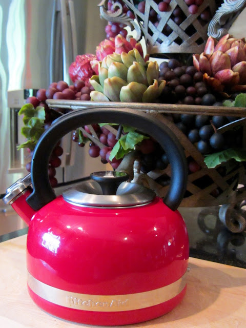 Day 3...The theme was, "Red". I chose our little red Kitchen Aid tea kettle, that matches our red cookware.